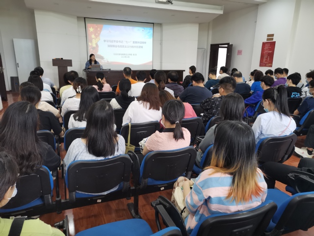 为深入学习贯彻习近平总书记“七一”重要讲话精神,推动党史学习教育走深走实,9月29日上午,英国正版365首页官网党委举办学习贯彻习近平总书记“七一”重要讲话精神专题宣讲会,邀请马克思主义学院副院长陈菲副教授作宣讲报告。专题宣讲会由院党委书记姜苓主持,学院师生党员约90余人参加。