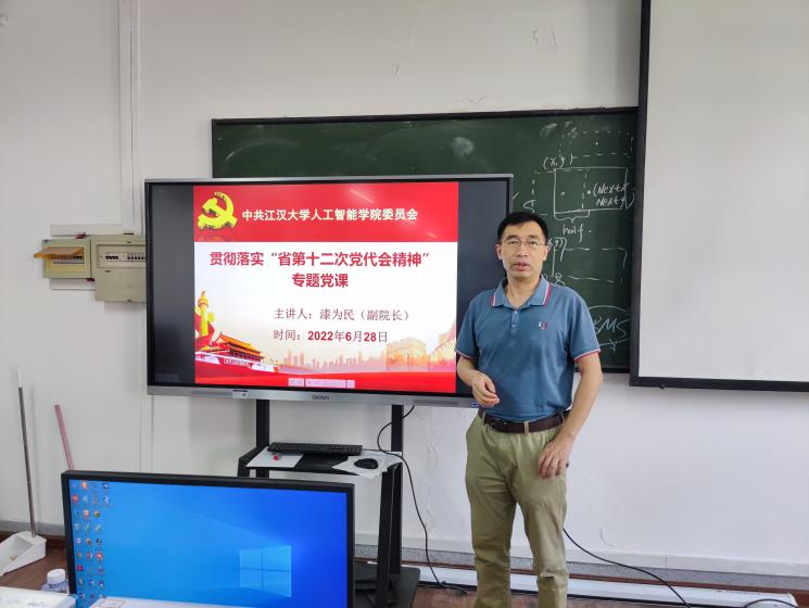 会议开始,漆为民书记给大家上了一节生动有趣的党课。漆书记向全体党员传达了“省第十二次党代会精神”,他强调,全体党员应该高举中国特色社会主义伟大旗帜,坚持以习近平新时代中国特色社会主义思想为指导,全面贯彻落实党的十九大和十九届二中、三中、四中、五中、六中全会精神,认真贯彻习近平总书记考察湖北、参加湖北代表团审议时的重要讲话精神,实事求是总结省第十一次党代表大会以来全省经济社会发展和党的建设取得的成绩。