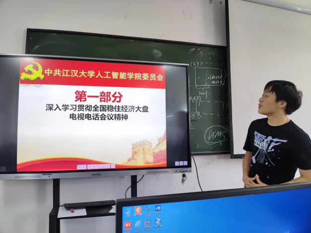 接下来支部开展理论学习活动。吴天同志和丁雪峰同志分别带领在座党员学习了“深入学习贯彻全国稳住经济大盘电视电话会议精神”和“深入学习贯彻习近平总书记近期重要讲话精神”。大家认真学习并且发表了自己的看法,承诺在散会之后继续深入学习。会议最后通报了近期学习强国得分情况,强调了每日坚持利用学习强国应用学习的重要性,并鼓励和督促每日学习强国得分较少的同志积极学习党的思想理论,紧跟时事。