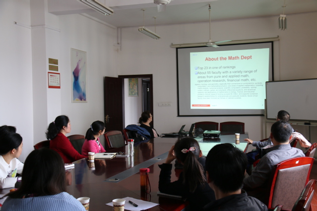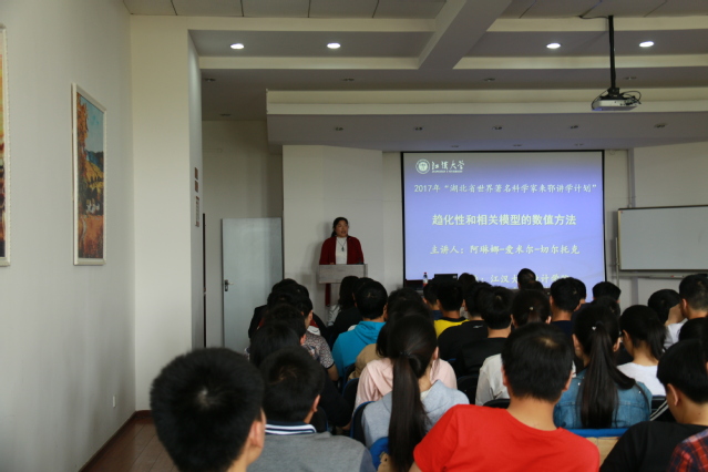 4月24到4月28日期间,我院顺利承办了省教育厅资助的“世界著名科学家来鄂讲学计划”的相关活动,美国北卡州立大学数学系主任阿琳娜·爱米尔·切尔托克教授莅临我院,与全院师生进行了的学术交流,这也是我院第四次承办该项活动。