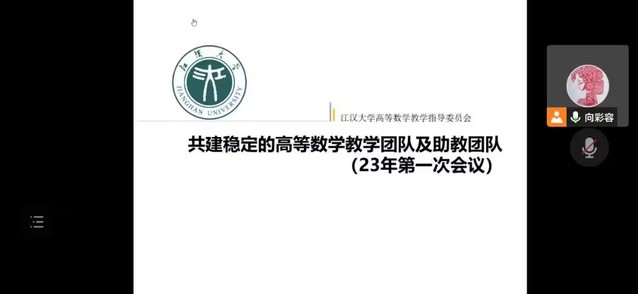 本次会议是该委员会换届选举后召开的第一次会议。会议主要议题为共建稳定的高等数学教学团队及助教团队,并审议《江汉大学高等数学I教学大纲(2022版)》。秘书介绍了高等数学课程目前情况、后续拟开展的相关工作、议题的出发点、目的和高等数学I的2022版大纲,委员们针对议题及大纲发表了意见建议。江汉大学高等数学教学指导委员会将助力共建课程相关教学团队和助教团队,且充分吸收各方面的意见建议,用于修订高等数学2023版教学大纲。