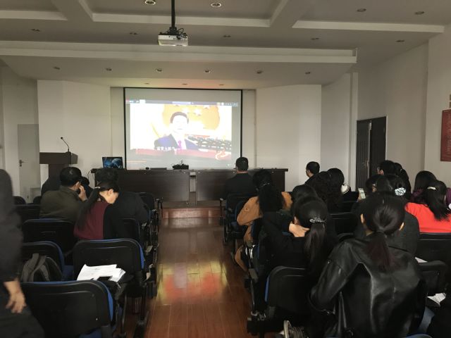 党的十九大开幕当天,学院组织部分教师党员和学生党员在学院会议室一同收看了现场直播。10月19日下午全院集中时,组织全院教职工观看了十九大相关视频转播,并通过分系谈论进一步领会十九大精神,大家结合自身实际和认知,纷纷表示党的十九大回应了时代要求,为党和国家事业发展绘就了新时代蓝图,对中国发展做了新的历史定位,作为高校教育工作者,要借助党的十九大召开之机,在校园这块知识、资源与人才的集散地,在做好本职工作的同时,争做创新的推动者、科教兴国的助力者、就业创业的促进者。
