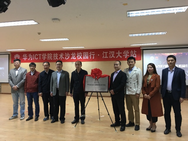 随后,程辉教授和高玲敏经理分别作为校企双方领导共同为江汉大学“华为信息与网络技术学院”揭牌。最后,阮维老师与活动现场的同学们分享了华为认证全套体系,以及如何备战HCIE等问题,并对华为ICT学院学生的就业前景进行了分析和规划,使同学们对于华为ICT认证有了更进一步的了解。