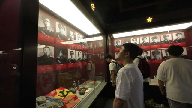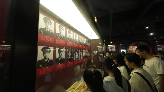 楚天将帅馆中集中展示的236名湖北籍将帅的资料、1938年刊载有《共产党员在保卫武汉中的责任》一文的《解放》杂志、1931年1月江西永新县农民党员贺页朵手写的入党誓词、红军所用带有五角星的手雷等大量珍贵的历史文物,生动展现了武汉会战历史和湖北军民在抗战中做出的卓越贡献,同时也再现了中国共产党带领千千万万中华儿女抵御外辱、浴血奋战的伟大革命精神。同学们一边驻足参观学习,一边交流思想心得,进一步凝聚了“铭记历史、缅怀先烈、珍视和平、开创未来”的思想共识。