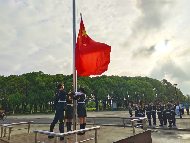 迎着清晨的第一缕阳光,校国旗仪仗队踏着铿锵整齐的步伐,在全体师生的注视下,五星红旗缓缓入场。伴随《义勇军进行曲》的奏唱,全体师生肃立,向国旗行注目礼,共同见证五星红旗在朝阳的映照下冉冉升起,表达对祖国的无限热爱。