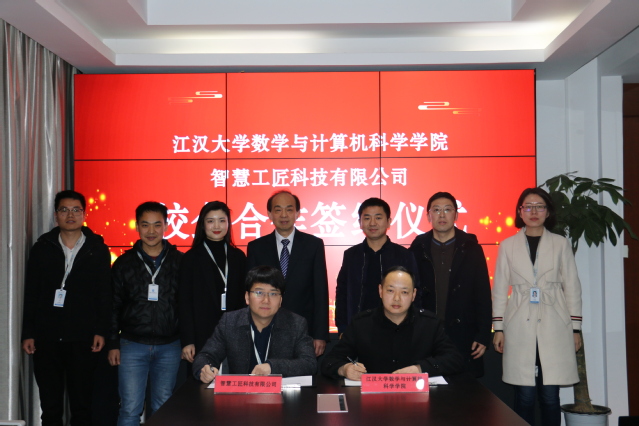 3月22日下午,数计学院院长程辉、副书记杨绪军、计科系主任邓宏涛以及毕业班辅导员李德江一行,走访了智慧工匠科技有限公司,并与该企业举行了产学研合作协议签约仪式。