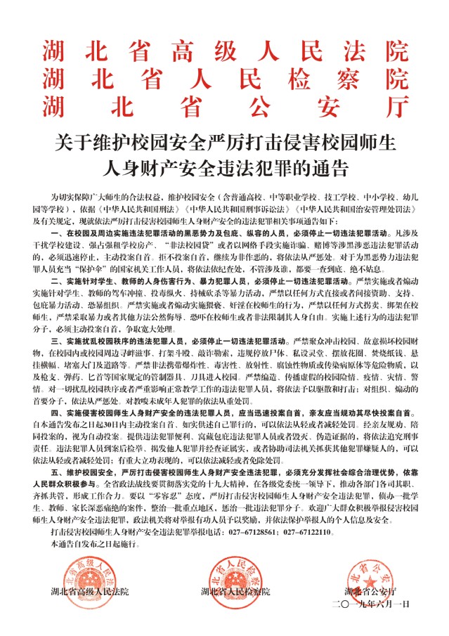 关于维护校园安全严厉打击侵害校园师生人身财产安全违法犯罪的通告