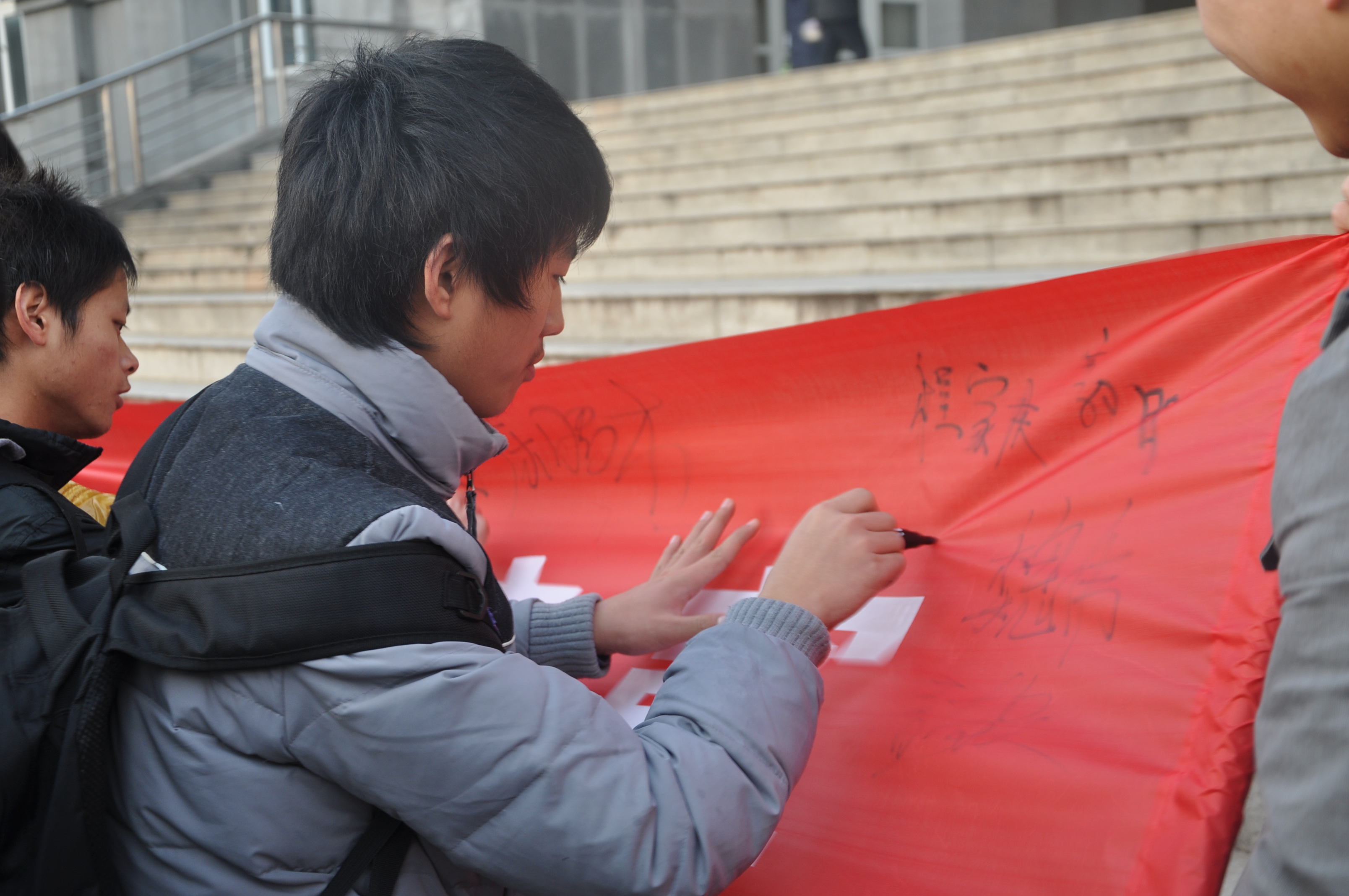 随后,院领导为2012年军训工作中涌现出的优秀学员和先进学员,以及上学年获得学术成果奖的同学进行了表彰和颁奖,以此鼓励大家开拓创新,敢于拼搏,积极投身到文化学习中去。新生代表朱梦飞进行了热情洋溢、充满激情的学风动员倡议,并带领同学们一起面向国旗,庄严承诺:“激情满怀,拼搏奋发,创优良学风,从我做起”。最后,每位同学在“创建优良校风学风”的横幅上签下了自己的名字,表明了自己的决心。