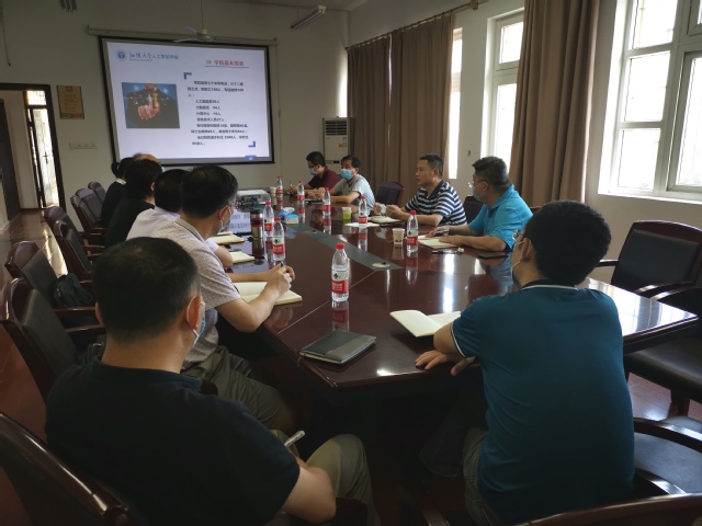 景新华校长指出,学院认真落实学校新工科学院调整的任务,扎实有效的推进组建过程的各项工作,时间短,实属不易,下一步任务更重,希望学院结合学校定位和发展需要,有探索的开展工作。他对学院今后的发展提出了六点要求:一是要做好做强人工智能专业相关基础课程的建设,要有“经典课”、“精品课”;二是要重视和优化人才培养方案,加强课程体系建设,要向国内外“先进”学习,不断思考;三是加强实验室建设,在谋划时要考虑“多样化”、“多层次”需求;四是加强教师队伍建设,要“走出去”和“引进来”相结合,培训和提升现有教师,引进和聘请校外导师,共同打造“基础层--专业核心层—重点领域层”多层次的课程体系;五是正确处理和学院与研究院的关系,充分发挥双平台的优势,使教学与科研并重,人才培养与社会服务并重;六是要做好“十四五”规划的谋划,思考学院长远的发展。