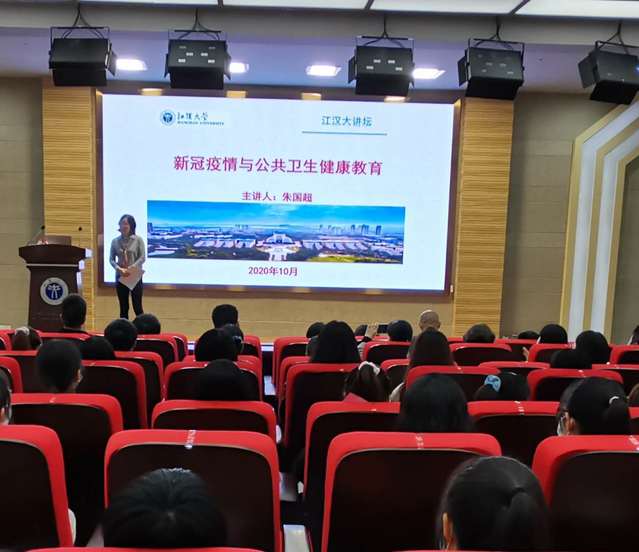 10月29日14时,江汉大学附属医院重症医学科主任、“全国卫生健康系统新冠肺炎疫情防控工作先进个人”朱国超在J13一楼报告厅主讲了“新冠疫情与公共卫生健康教育”专题报告,来自教务处、产业公司、英国正版365首页官网、化环学院、商学院和外国语学院的150余名师生聆听了党课,报告会由人工智能学院党委书记姜苓主持。